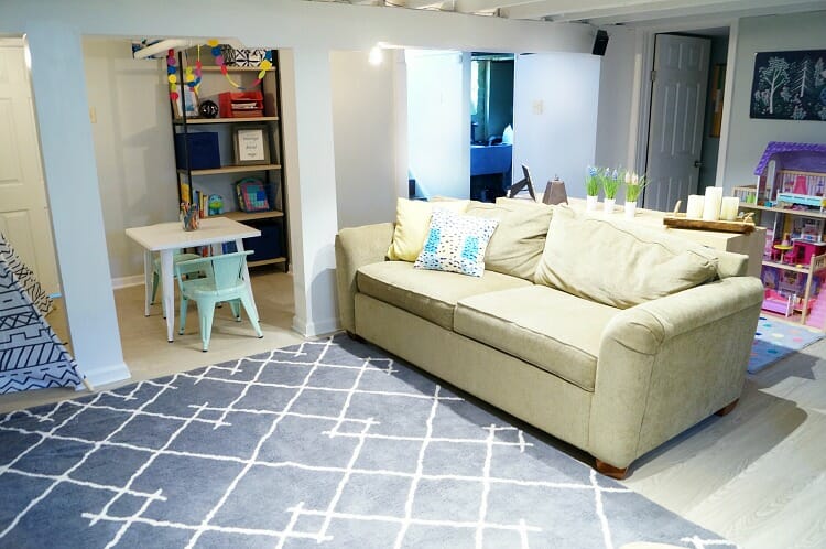 Such a great room! I love that you painted the unfinished ceiling white! Was it a hard project? Basements are so hard to make feel light and airy and you did such a good job!