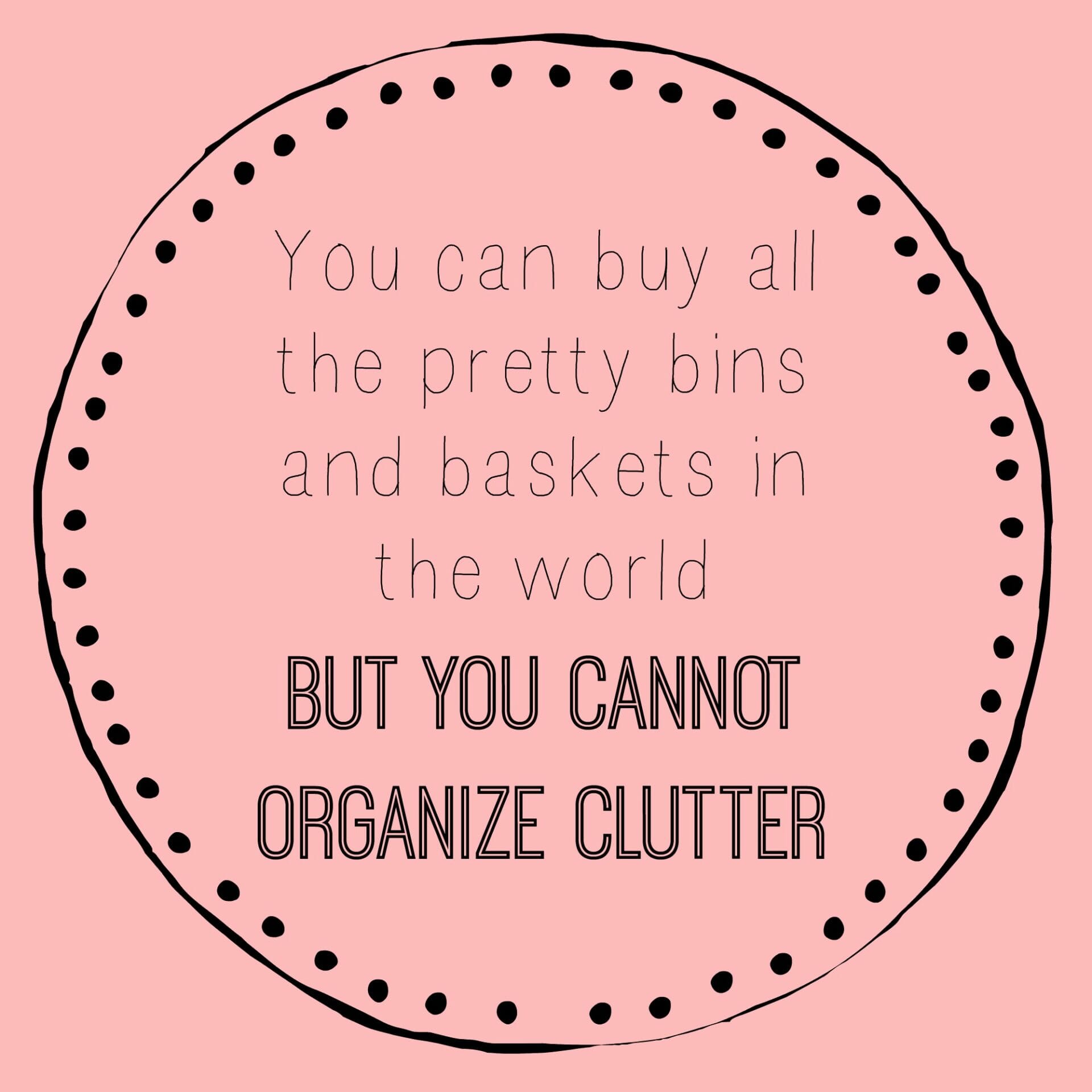 A giant, unorganized mess with a hodge podge of baskets. I saw this quote on Facebook this week and it just really stuck with me. It is so so true. Until you truly get rid of all the stuff, it will never be organized.