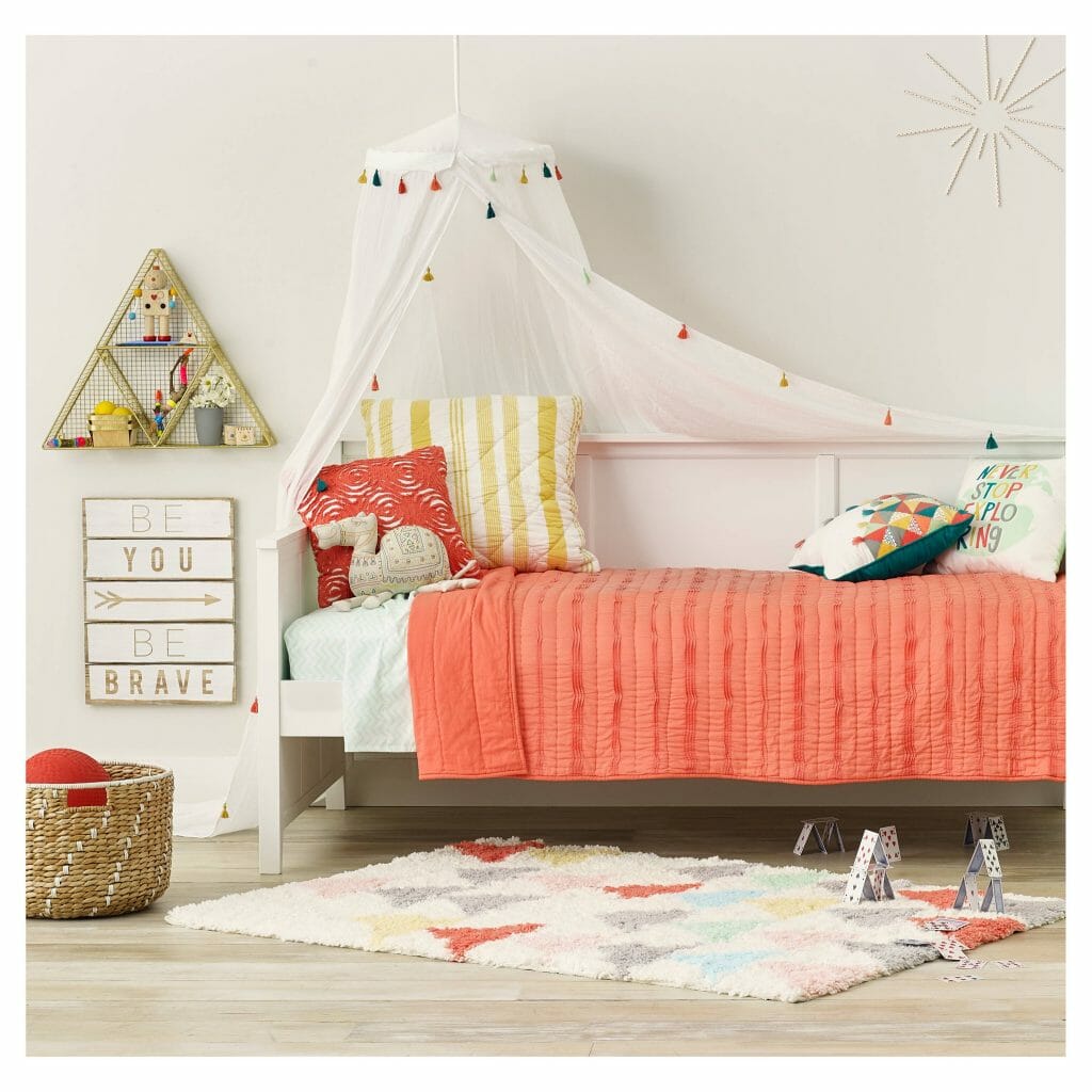 That bed canopy is too adorable! That with those triangle decals are already the cutest start to any space.