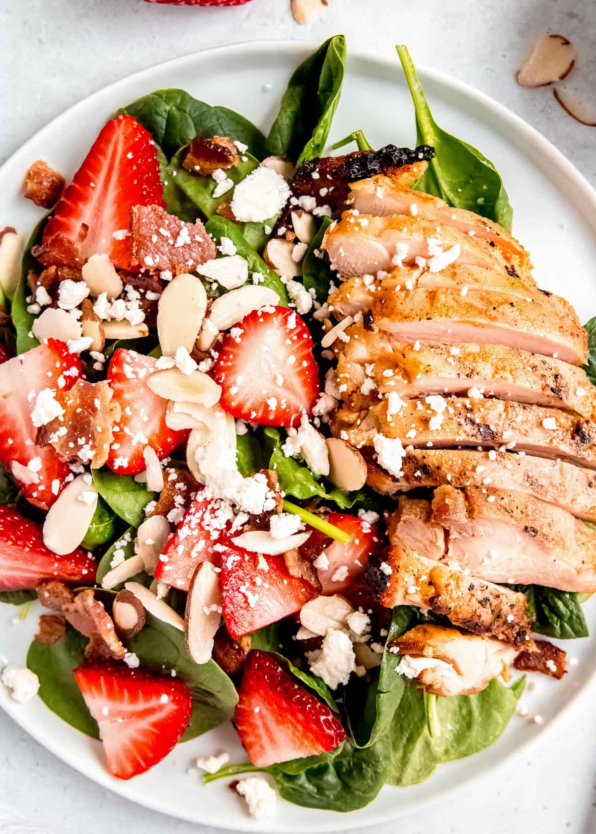 5. Strawberry Spinach Chicken Salad with Goat Cheese and Almonds