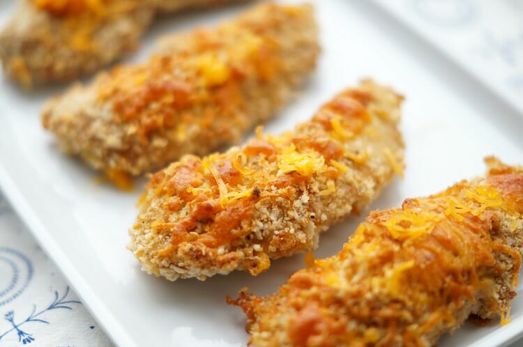 Cheddar and Pretzel Crusted Baked Chicken is my all grown up spin on the classic chicken tender. My kids love chicken fingers and I love knowing that these homemade chicken tenders are full of real ingredients! While making homemade chicken tenders take a little more work, the end result is definitely worth it and so much better than frozen chicken fingers!