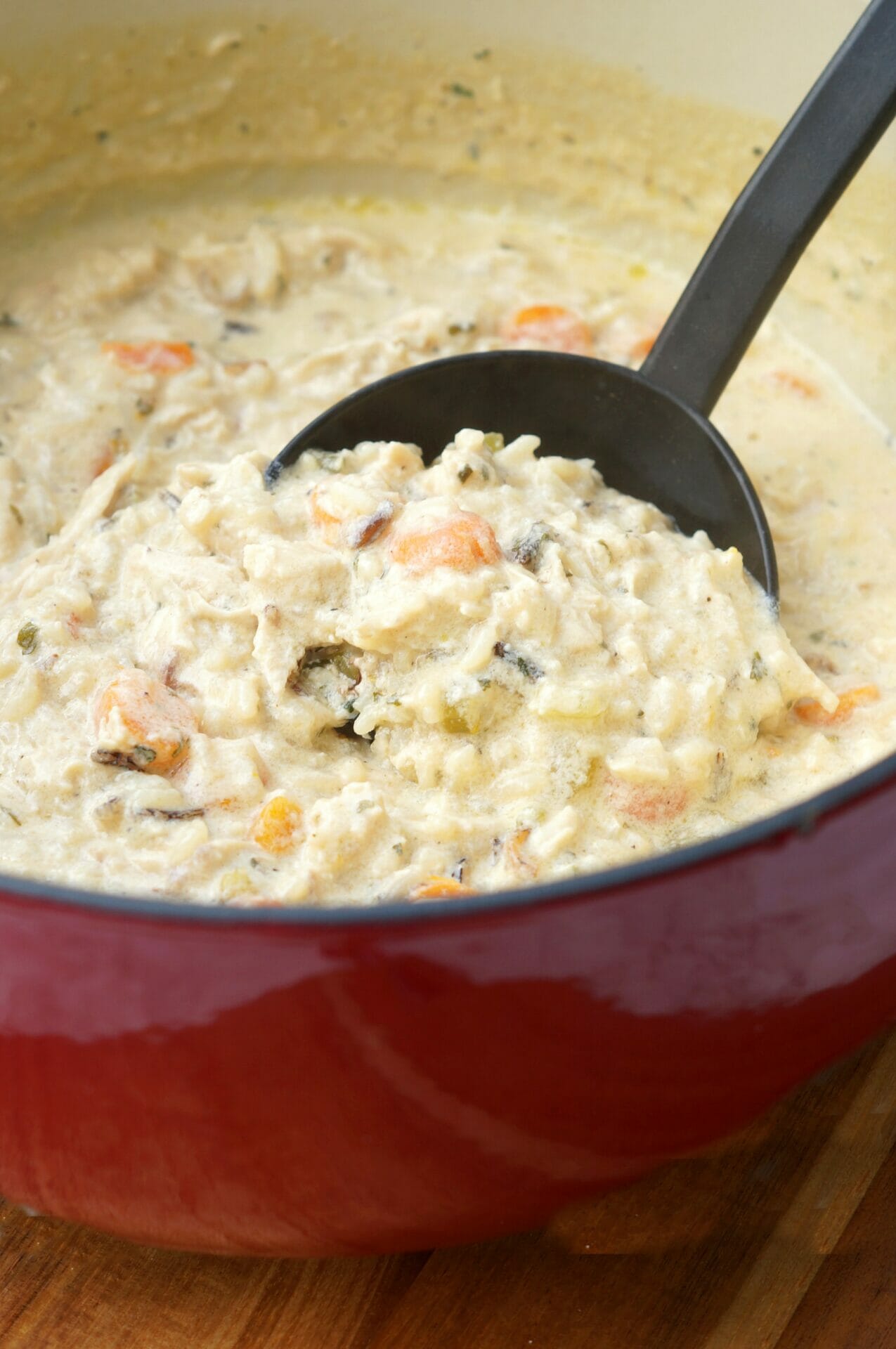 Creamy Chicken and Wild Rice Soup is a creamy and comforting soup, perfect for cold winter nights. Your family will love this classic combination of chicken and rice, in soup form!