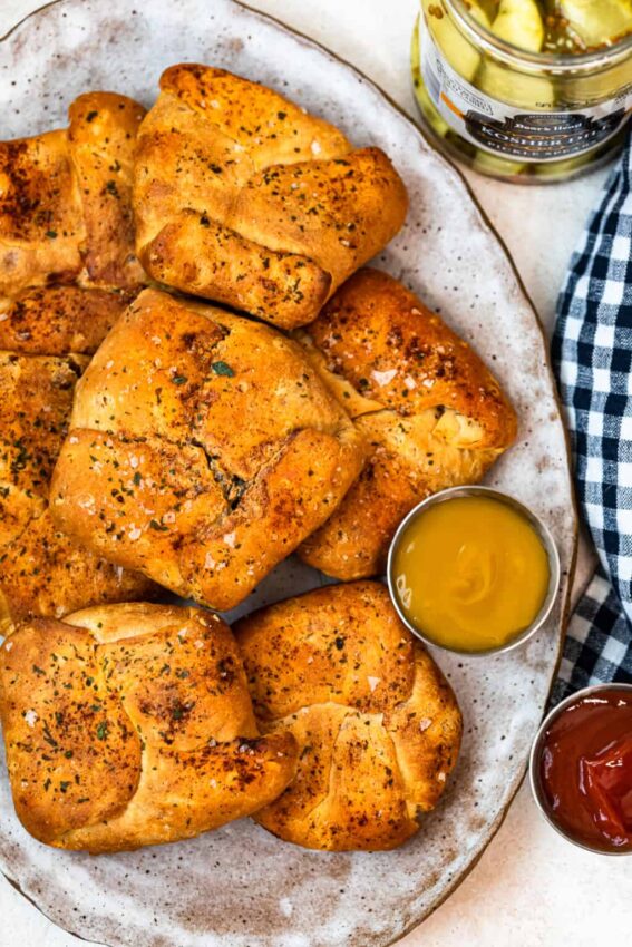 From start to finish, they hit the table in under twenty minutes, which makes them perfect for last-minute game day hosting. You can also swap in little smokies for mini versions, add cheese slices, brush with garlic butter, or sprinkle with everything seasoning to dress them up. S