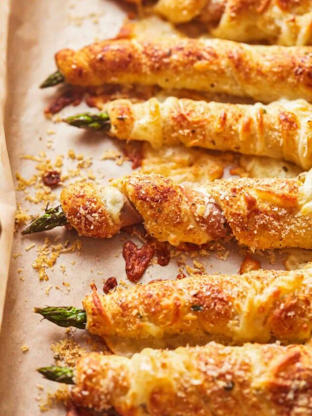 The bundles bake in about fifteen minutes until the crescents are puffed and golden and the asparagus turns crisp-tender. Each spiral is easy to pick up and eat with your fingers, so it works perfectly on a mixed appetizer tray.