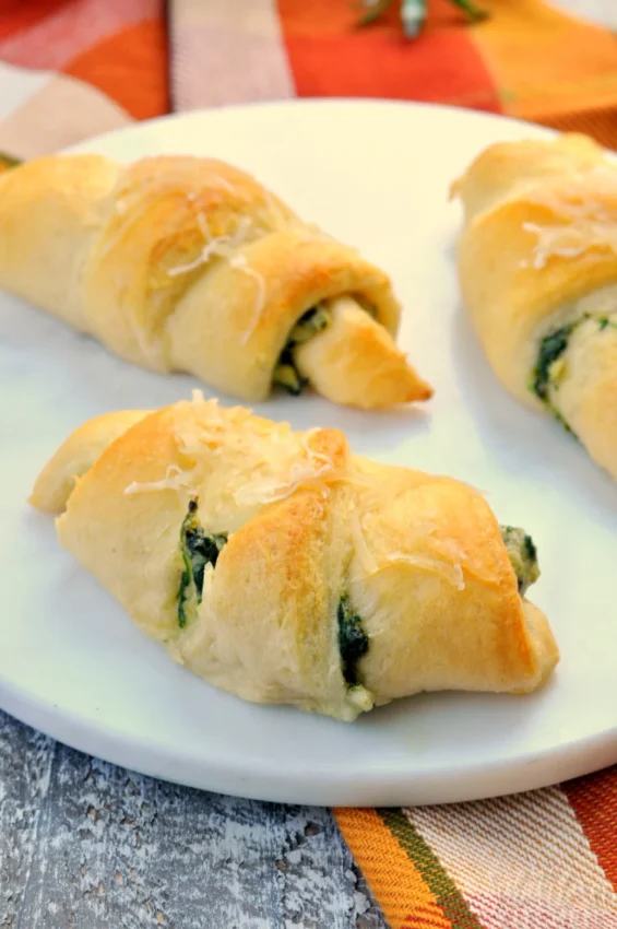 These spinach artichoke crescent rolls turn everyone’s favorite party dip into tidy, handheld bites. The filling starts with thawed chopped spinach, canned artichoke hearts, Parmesan, and garlic. You fold that into a creamy base of softened cream cheese, sour cream, Greek yogurt, and a little mayonnaise, so the mixture bakes rich and tangy instead of greasy.