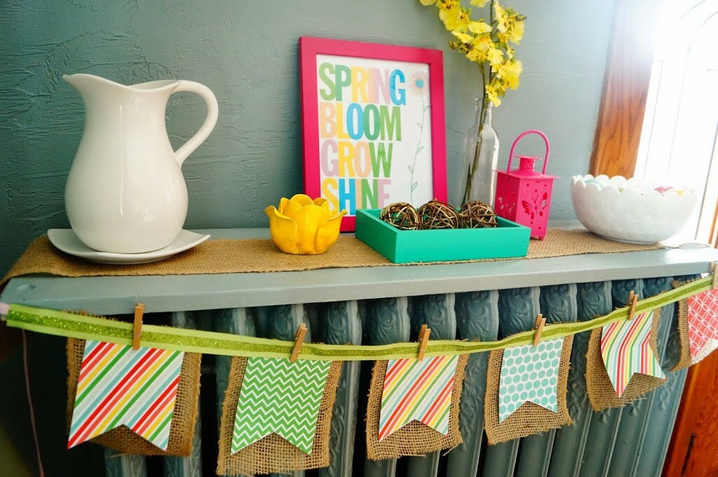 I used a free printable to create this Easy Spring Banner and you can see above the banner that I there is a beautiful Spring printable right above it from Hoosier Homemade.
