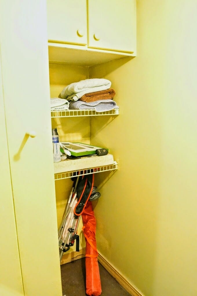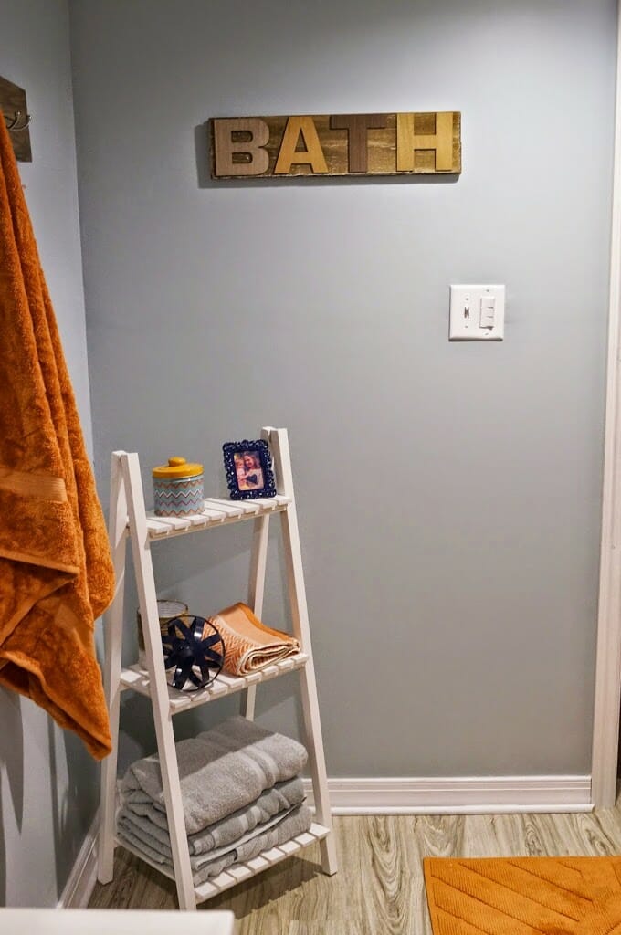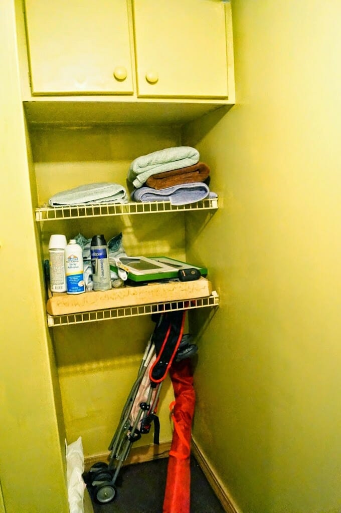 This is the only spot unfinished in the bathroom. I want to build shelves on this wall like I did in my bedroom.