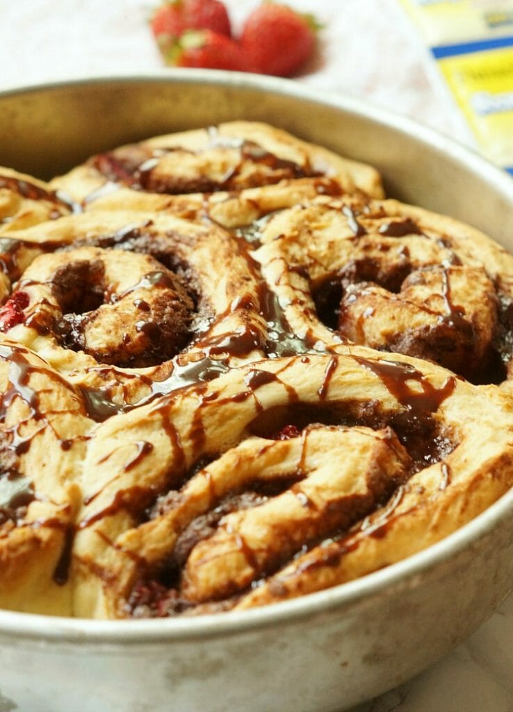 Nutella and strawberry cinnamon rolls taste like dessert and brunch in one bite. Soft dough bakes into fluffy spirals filled with chocolate hazelnut richness and juicy berry sweetness. The filling turns gooey and fragrant, while the edges get lightly golden.
