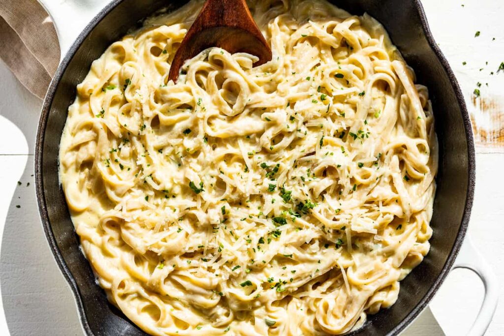 1. Creamy Parmesan Garlic Fettuccine