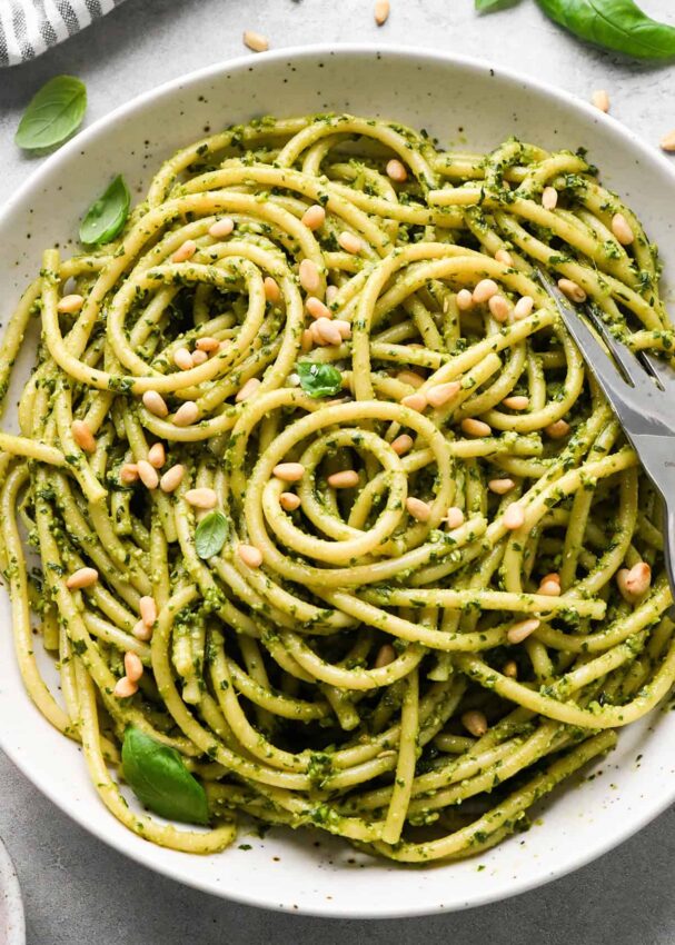 19. Pesto Pasta with Toasted Pine Nuts