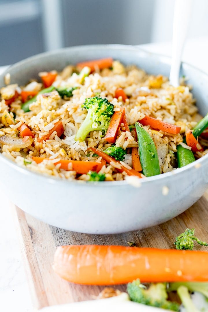This veggie fried rice is better than takeout and so flexible. It is a great way to use leftover rice and clean out the fridge. Butter and soy sauce create that classic savory flavor. Then eggs add protein and a soft, rich bite. Use any mix of spring vegetables, like carrots, broccoli, and snap peas. Because everything cooks in one pan, dinner moves fast. I like it as a meatless main, but it also works as a side.