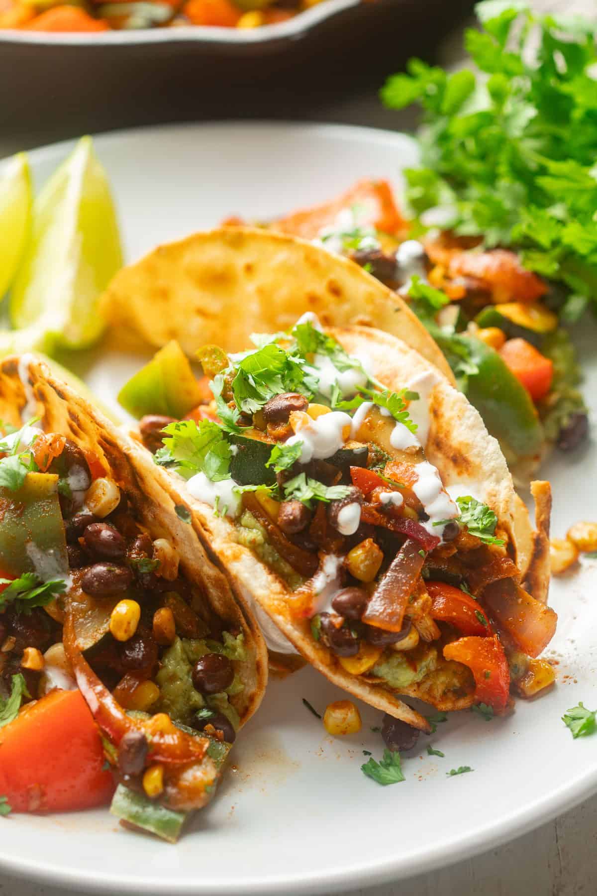 These restaurant-style veggie tacos are fast, vibrant, and weeknight-friendly. In a hot skillet, onion and corn sear until lightly browned. Then garlic, bell peppers, and zucchini cook until tender and caramelized. Next, black beans go in for protein and staying power.
