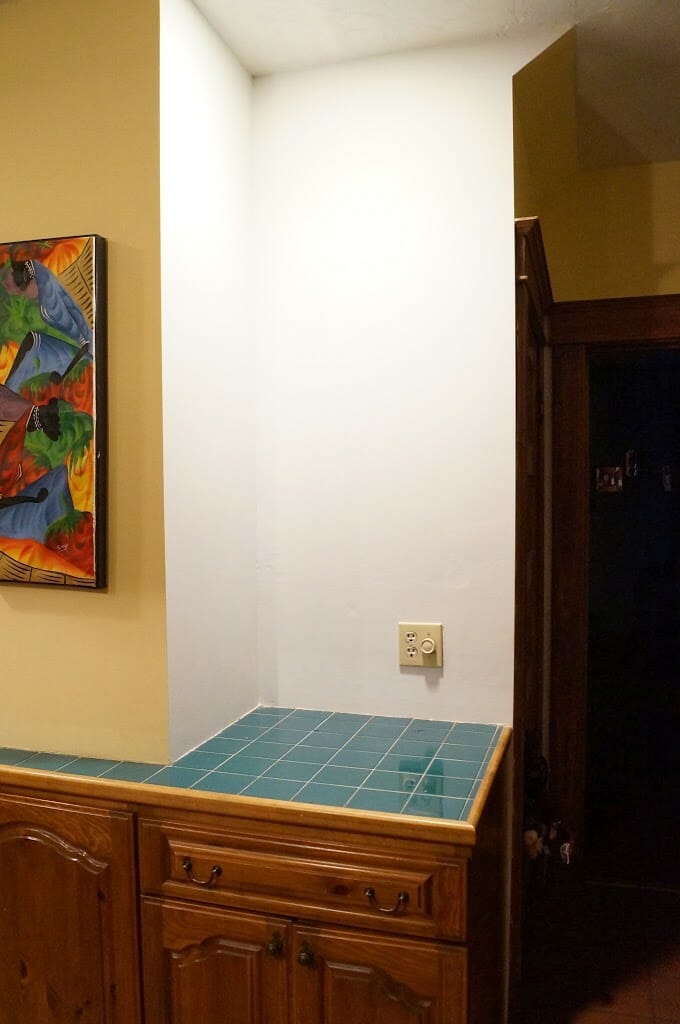In the corner of our kitchen we had a beautiful built in wine rack left by the previous owners. I wish I had taken a before picture to share, but you can kind of see it in the kitchen pictures I posted earlier.
