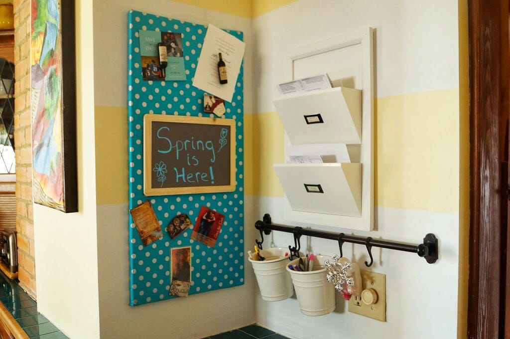 Our old home was sooo small and I had no area for this either! Mail and papers were everywhere and usually strewn all over our dining room table. I love having more space to have organized spaces! Maybe after time you will find a place in your home that works for this!
