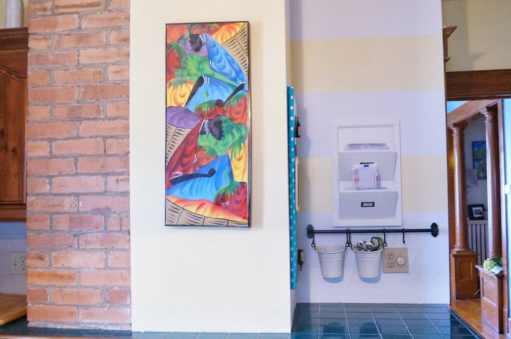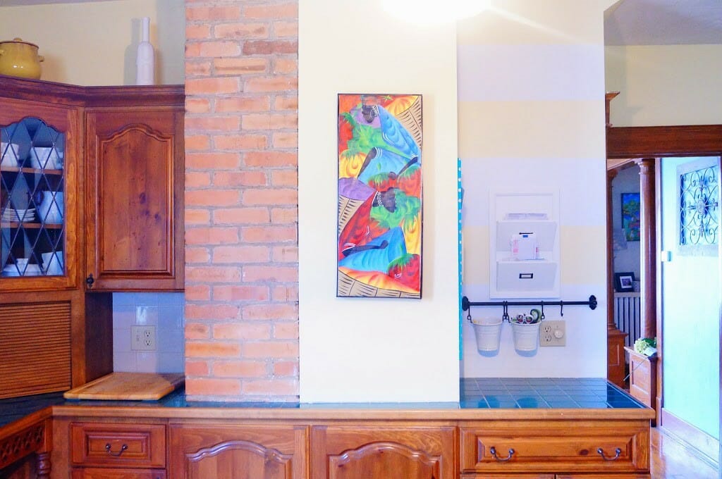 I am so glad that this corner has gone from an unused wine rack to a completely functional space for our mail, invitations, pens, and other little things. I love having a place to keep clutter off the counters. This is a little update that has made a big impact in the kitchen.