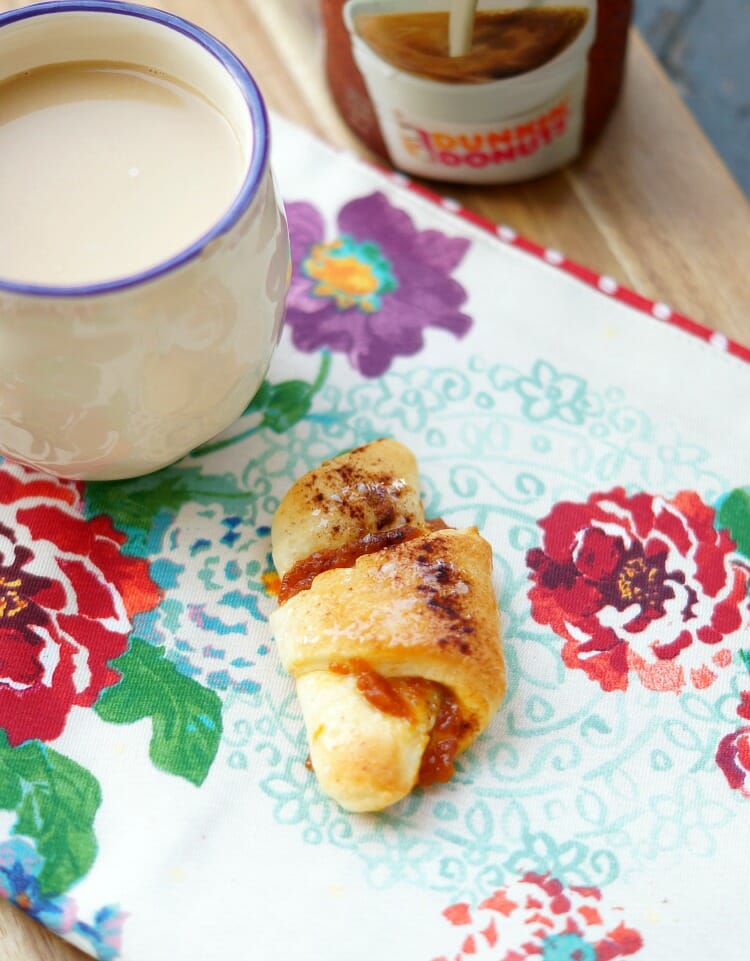 Admittedly, I drink way too much coffee. All year long, all day long, but there is nothing better than a cup of hot coffee with lots of sweet creamer, paired with an easy dessert. I love a sweet snack with my coffee and these Pumpkin Pie Cream Cheese Roll Ups fit the bill perfectly.
