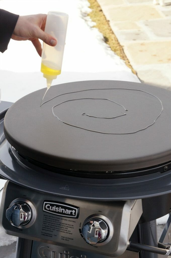 Preheat your griddle to medium heat (indoor or outdoor) and lightly coat with oil.