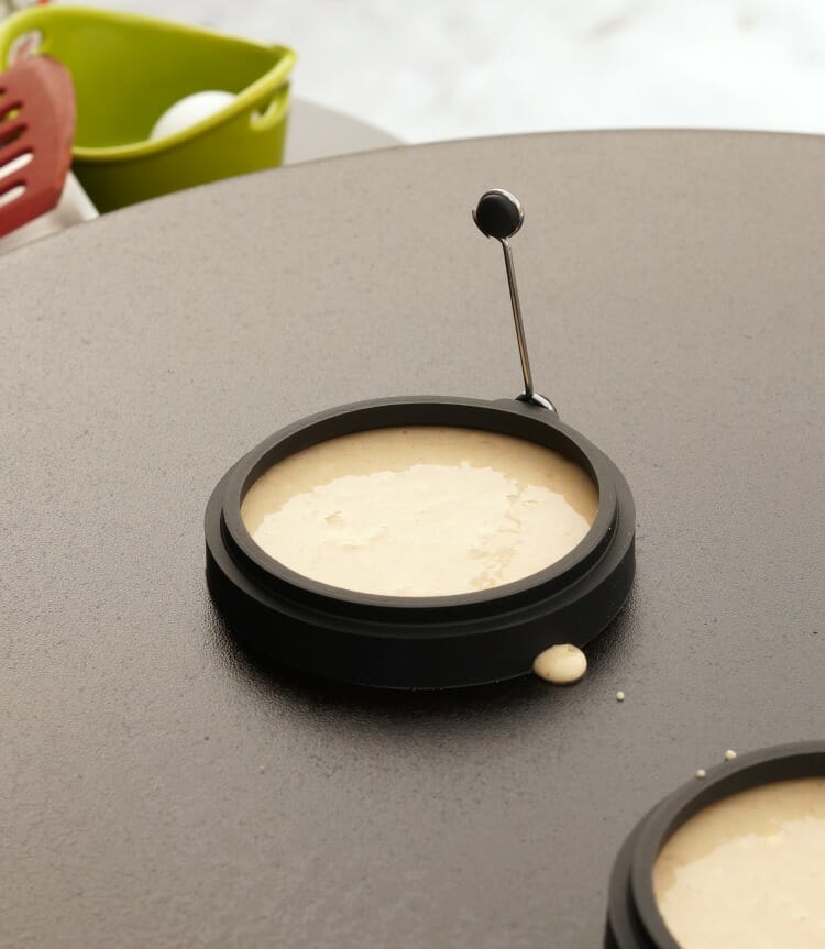 Add 1/4 cups of batter directly to griddle or using a silicone pancake mold.