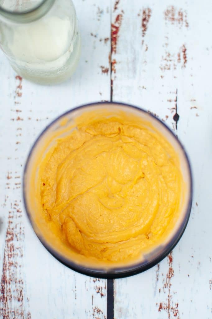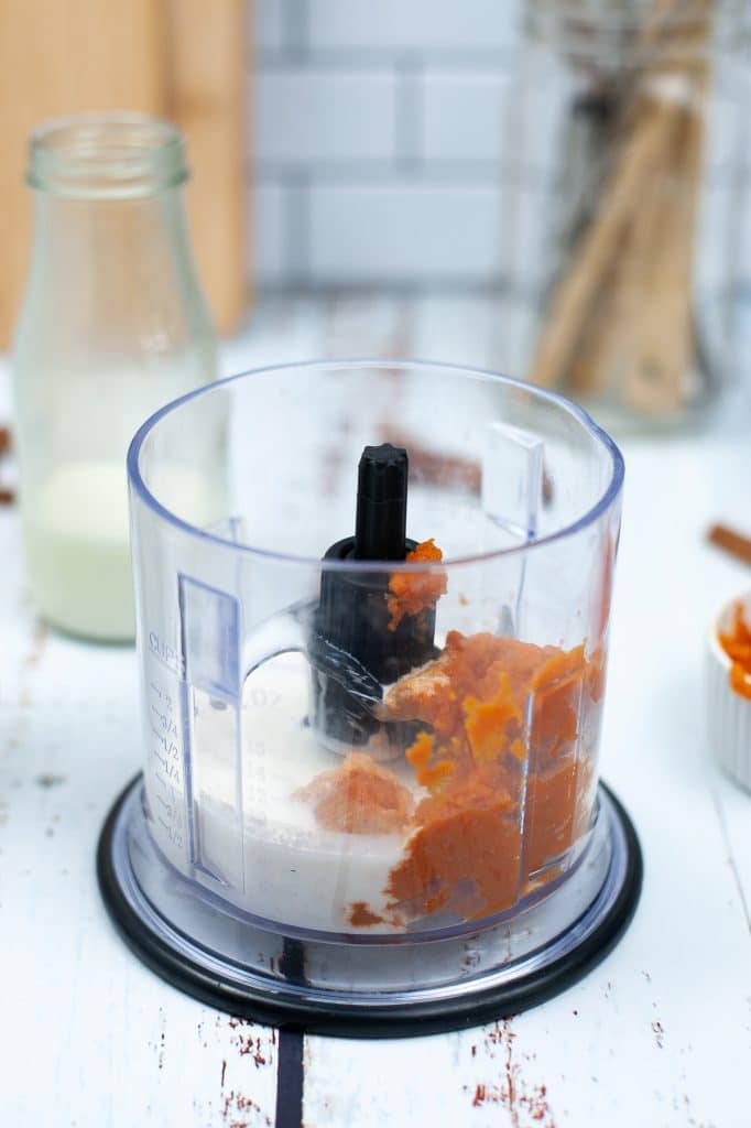You only need two ingredients to make pumpkin foam, pumpkin puree and heavy cream! You add the two ingredients to a food processor or blender and puree. And that’s it! You have the perfect topper with your fall drinks. Don’t like chai tea? Use this pumpkin cream cold foam to top iced coffee!