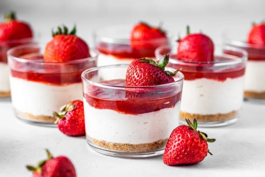 The layered presentation in individual servings immediately gives you that romantic, intimate touch, no slicing necessary. Because they’re chilled and assembled in advance, you’ll have extra time to focus on the ambiance instead of the kitchen. And with the fruit spread doing double duty as topping and flavor anchor, the strawberries shine without being over-sweetened.