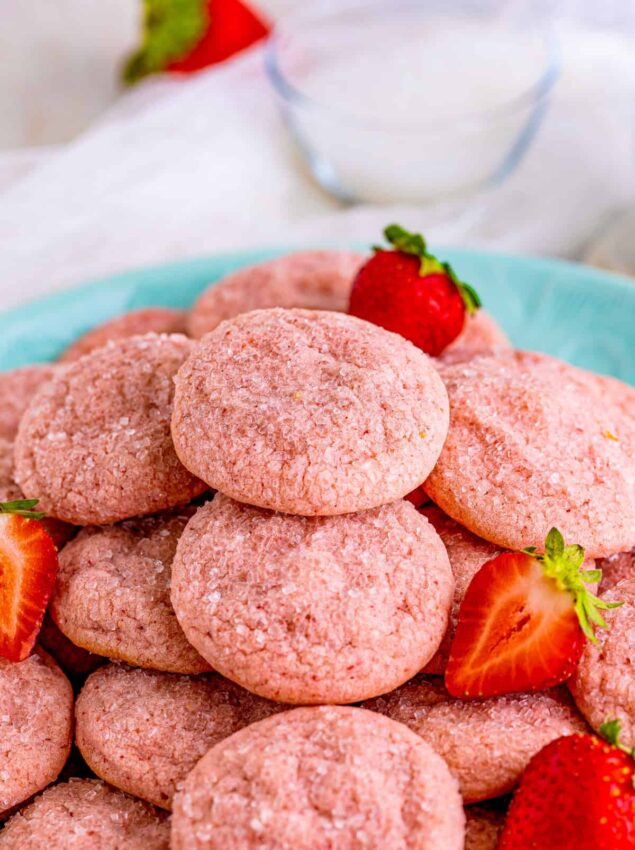 Soft-chewy cookies infused with strawberry powder and baked to golden edges. These sweet circular treats feel friendly, approachable, and perfect for Valentine’s gifting or sharing.