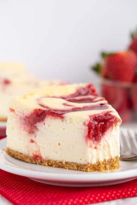 The swirl of strawberry puree weaves through the filling, offering bursts of berry flavor and a beautiful visual effect.