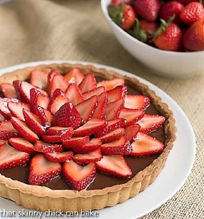 A crisp, buttery chocolate crust filled with glossy ganache and topped with concentric layers of fresh strawberry slices makes this tart both show-stopping and delicious. It carries the elegance of a bakery dessert but can be achieved at home, making it ideal for Valentine’s when you want something sophisticated yet manageable.
