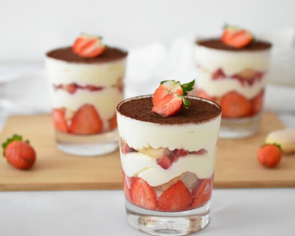 Light, luxurious, and layered with romance, this no-bake tiramisu in a glass features velvet white chocolate-mascarpone cream, juicy strawberries, and crisp ladyfingers dipped in a lemon-sugar and strawberry juice solution.
