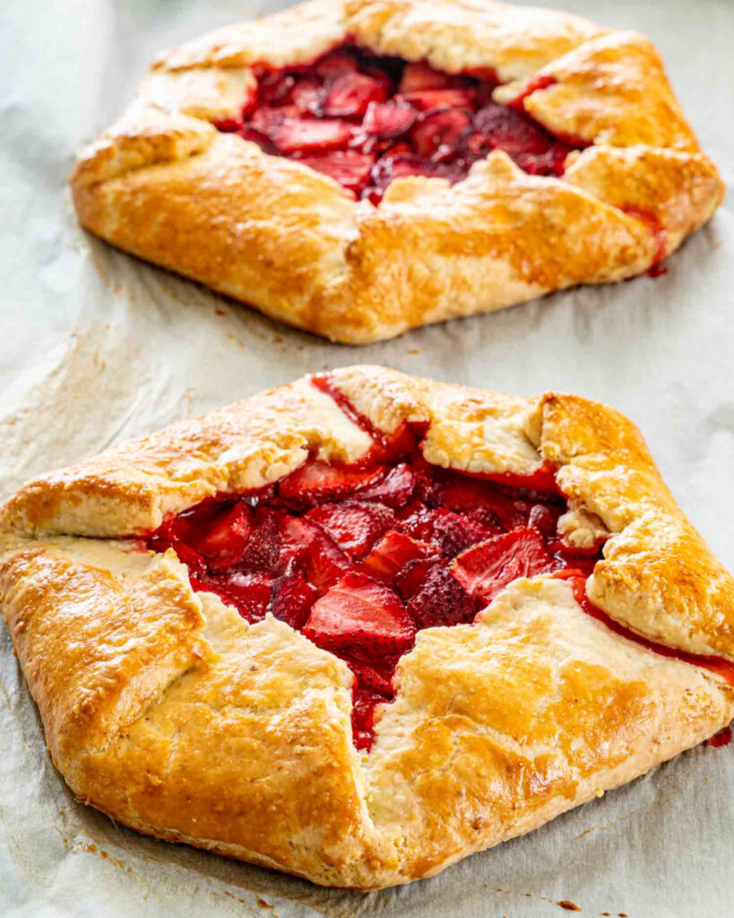 As the strawberries bubble up during baking, their bright color and natural juices create a rich filling that balances perfectly with the flaky pastry. Sprinkle a little powdered sugar or a few fresh mint leaves for a finishing flourish. Ideal for sharing between two or cutting into individual servings.