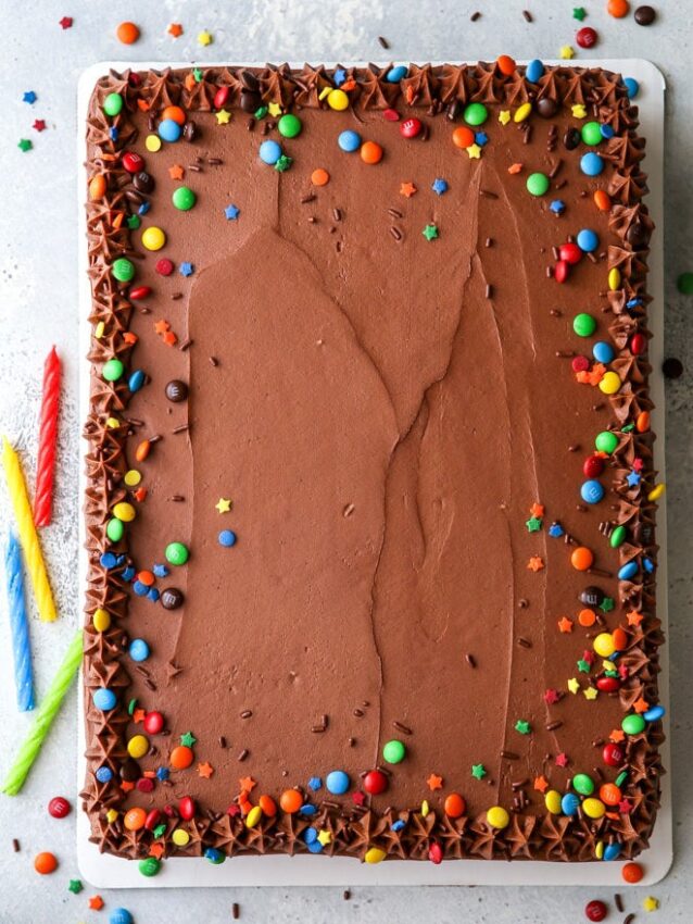 Because it is a sheet cake, slicing and serving are completely low maintenance, just cut into neat squares and let guests help themselves. It holds up well at room temperature, travels easily in the pan, and can be made a day ahead, making it one of the easiest crowd-friendly Super Bowl desserts you can add to your lineup.