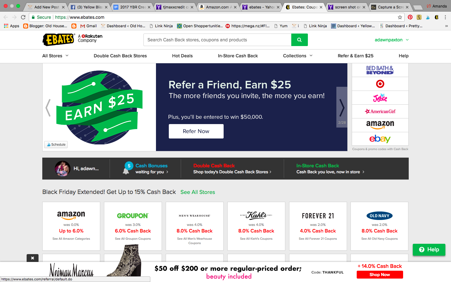 Have you seen those commercials for Ebates? It isn’t a scam or anything shady. It seriously works. All you do is go to their site, sign up for an account and search the stores you want to shop. If you find one that has cash back listed, just click on it and it takes you directly to the retailers site. That’s it!
